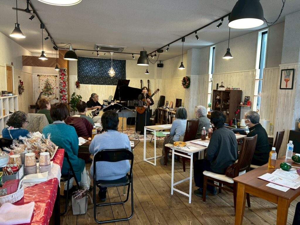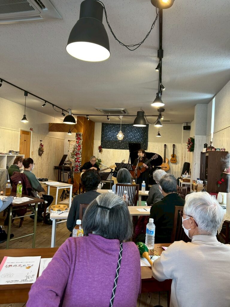 当日はギターの生演奏で、昭和歌謡やシャンソンなどの懐かしい名曲を、曲の解説や思い出話を交えながら楽しく歌いました。